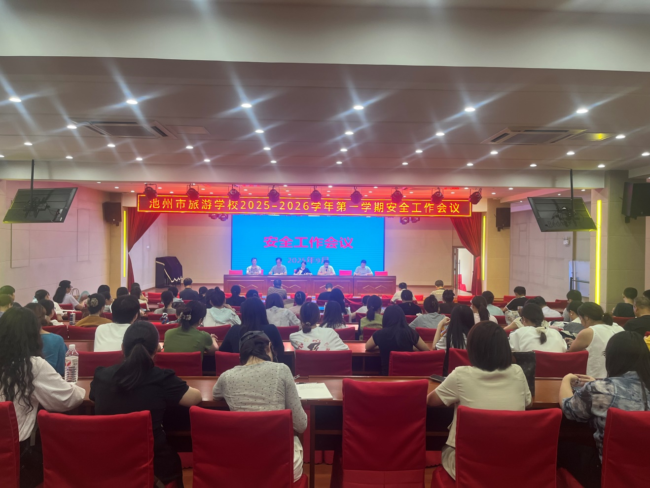 為切實(shí)筑牢校園安全屏障,壓緊壓實(shí)安全管理責(zé)任,9月26日,池州市旅游學(xué)校在多功能廳召開全校安全工作會(huì)議,全體教職員工、安保人員、宿舍管理人員參加會(huì)議。會(huì)議由金詩(shī)平校長(zhǎng)主持。